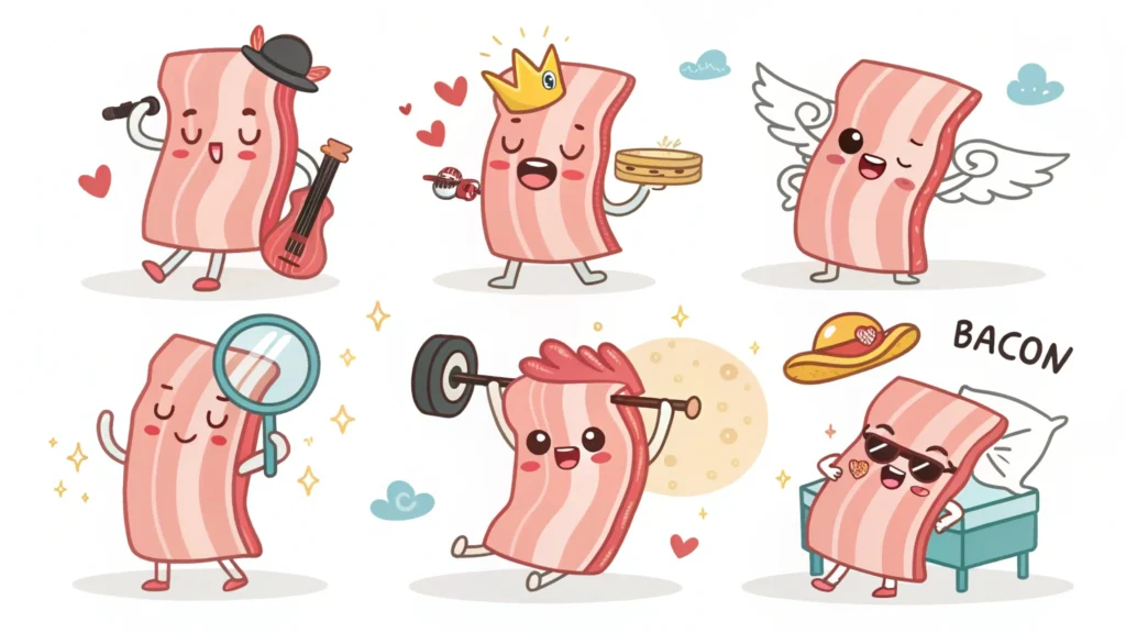Use them in group chats, captions, or even birthday wishes — because bacon always adds flavor.
