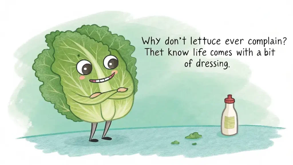 Lettuce may look simple, but it brings a kind of lightness that’s hard to ignore. I’ve used these puns in casual chats, captions, and even during some kitchen chaos, and they always land with a soft, silly charm. They’re quick little reminders that life doesn’t always need intensity, sometimes it just needs a crunch, a smile, and a pun that doesn’t take itself too seriously.
