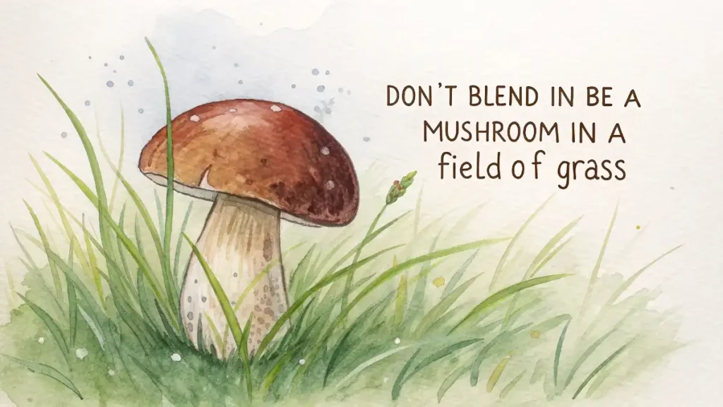 - Don’t blend in, be a mushroom in a field of grass.