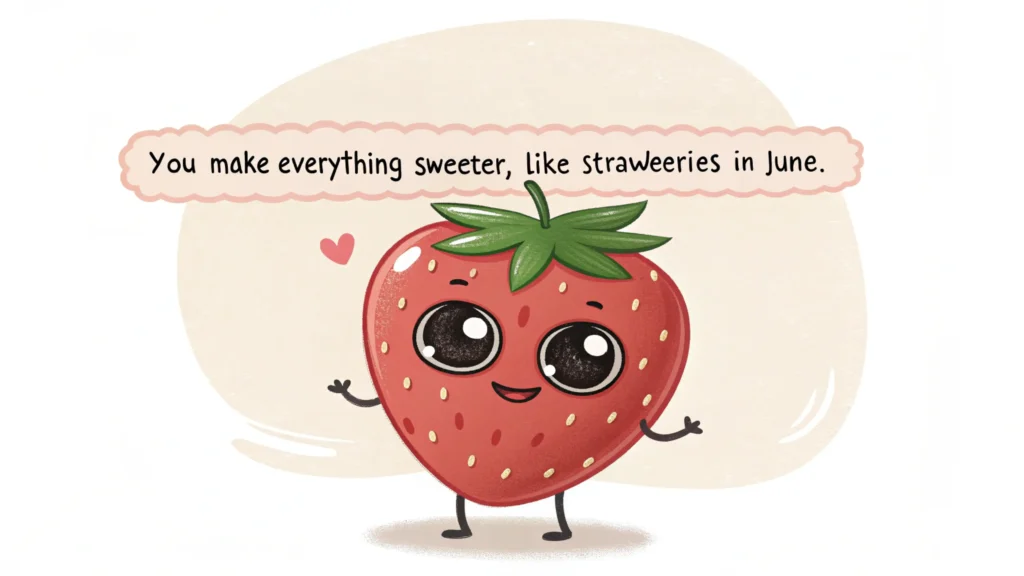 These strawberry love puns are a little longer and a little warmer — the kind you’d actually write inside a card or drop into a heartfelt text. They’re not over the top. They’re just sweet enough to land exactly right.