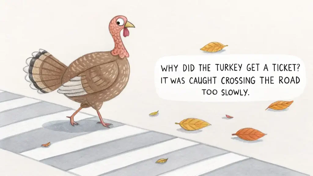 9. Why did the turkey get a ticket? It was caught crossing the road too slowly.